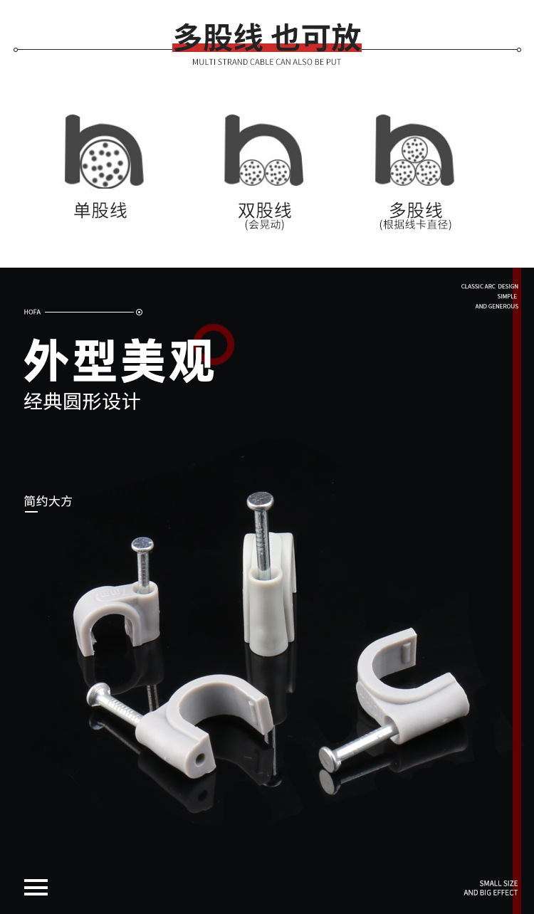 鋼釘線卡圓形原色固定電纜塑料電纜網(wǎng)線線卡 墻釘線釘電線卡扣
