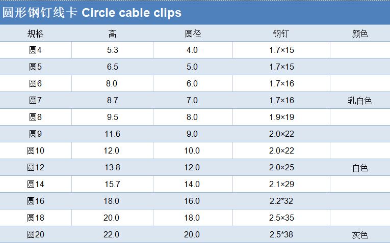 上一篇:量大從優(yōu)PE白色料注射成型插釘式線扣鋼釘線扣方形扁形鋼釘線卡