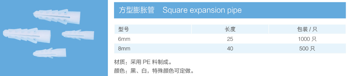 批發(fā)大方型膨脹管 6 白色塑料膨脹管 PE緊固件連接件 條形膨脹管