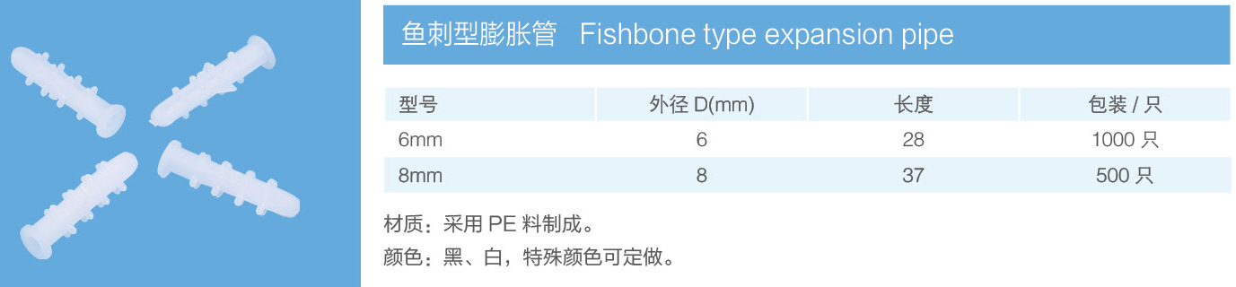 廠家供應魚尾膨脹管PE 白色塑料膨脹管 魚尾形條形膨脹管φ6四柱