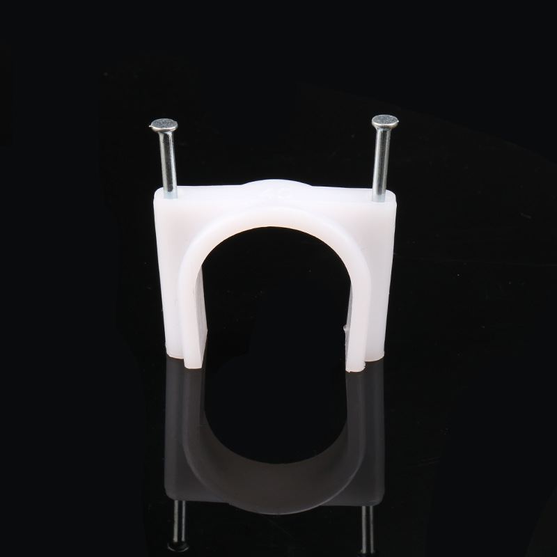 量大從優(yōu)PE白色料注射成型插釘式線扣鋼釘線扣方形扁形鋼釘線卡